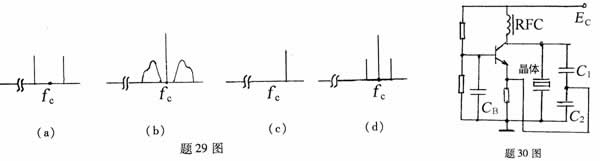 29.(本题6分)分别说明图示四种频谱结构各属于哪种调幅信号的频谱.(fc为载波频率)