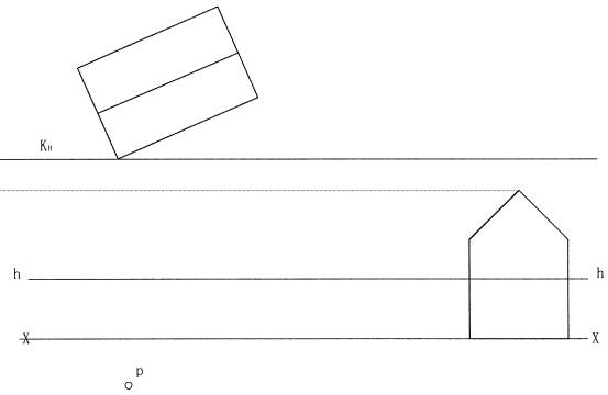 十、画出两坡屋顶房屋的两点透视图(本大题10分)