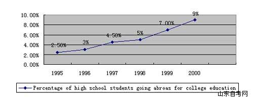 Compared with 5 years ago, more school students now go abroad for college studies, a tendency which can be shown in the following graph. How to explain the phenomenon? What are the causes?