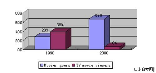 The graph below shows that the number of people going to movies is declining while the number of TV movie viewers keeps claming. What do you prefer: seeing films through TV at home or going to the movie houses?
