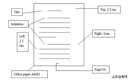 每段第一行要缩进4-5个字母;练习时,隔行写便于教师批阅。考试时,不必要。标点符号后要空格。